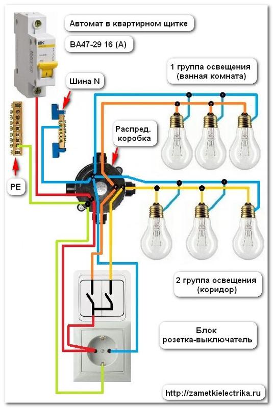 - Нулевой провод соединяется со всеми светильниками напрямую