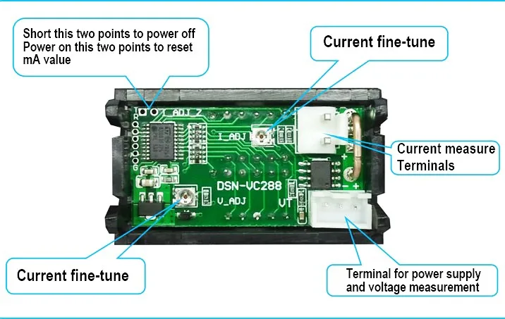 - DSN-VC288 Цифровой ампервольтметр DC 0 — 100V / 10A (Красная/Синяя индикация)