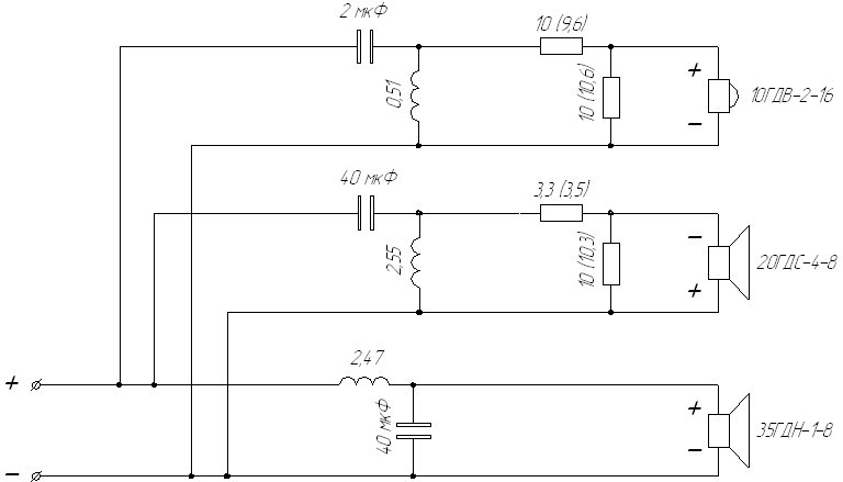Все три динамические головки имеют сопротивление 4 Ом, что безусловно упростило их согласование. Частоты раздела и Гц. Катушка L1 — самая большая бескаркасная намотана на оправке диаметром 56мм, ширна намотки 28 мм, диаметр провода 1,8 мм, витков. Катушка L3 —бескаркасная намотана на оправке 40 мм проводом дмаметра 1,2 мм, ширина и высота намотки 20 мм витков. Катушки L2 и L4 подошли из входящих в комплект кроссоверов.