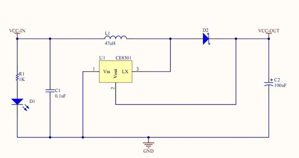 Конденсатор Cin — В этой схеме для Cin используется конденсатор емкостью 100 мкФ. Это стандартное значение для повышающего преобразователя согласно техпаспорту регулятора 34063.