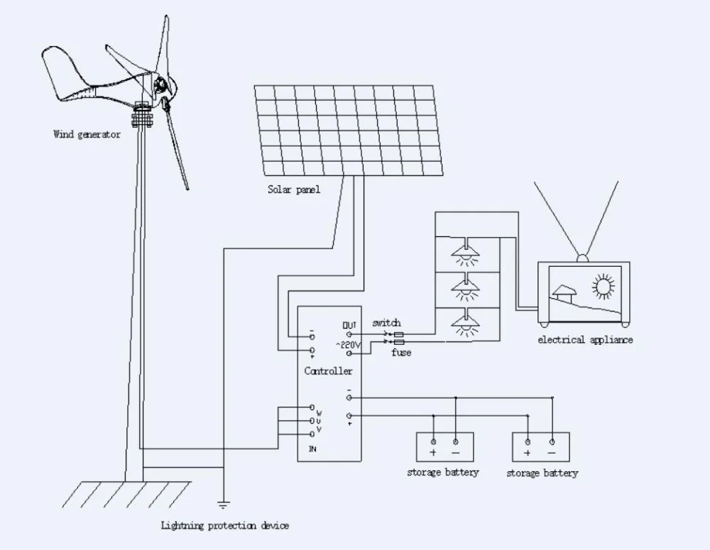 (5) A тормоз устанавливается для предотвращения механических повреждений от сильного ветра и высоких скоростей вращения. Он также может останавливать турбину, когда в ней нет необходимости.