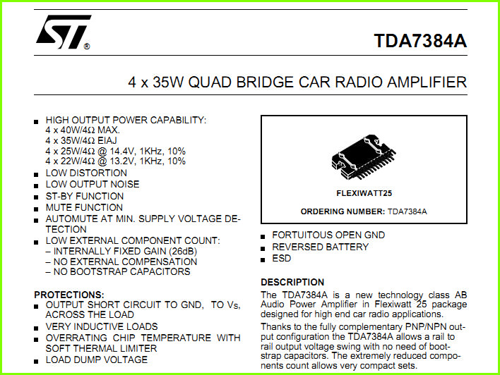 TDA7384 — автомобильный усилитель мощности 4 x 22 Вт