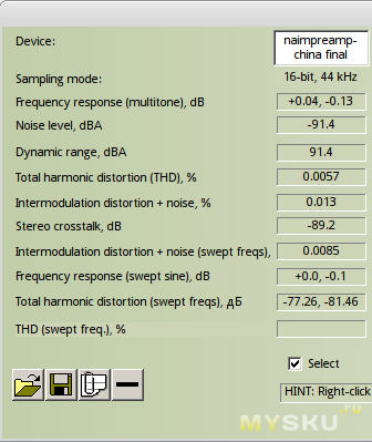 Измерения в RMAA предусилитель+усилитель выходная мощность Pmax=50 Ватт: