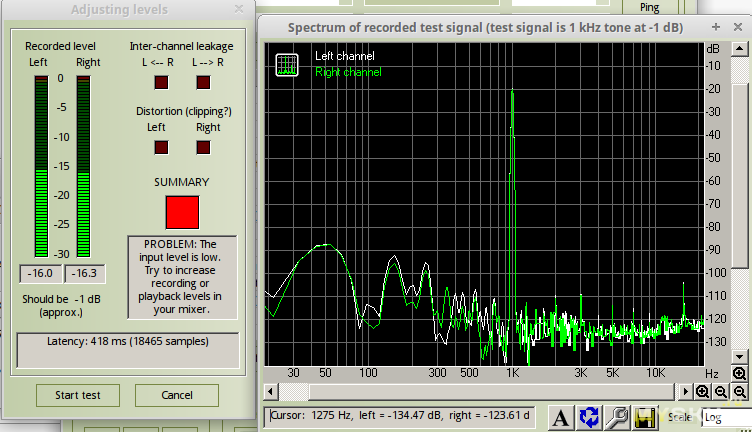 Измерения в RMAA. На выходе уровень сигнала Vpp 2.1V.