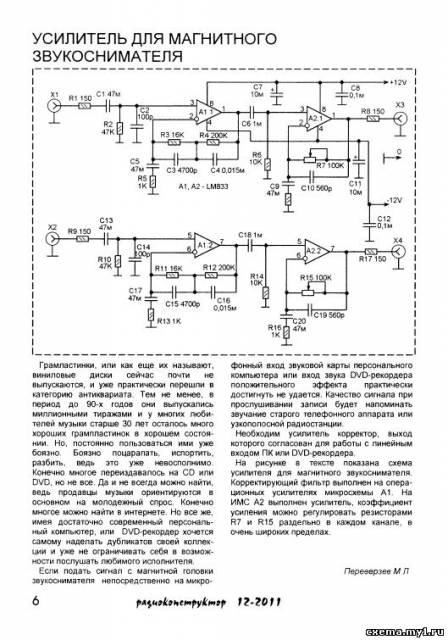 Современный усилитель-корректор | Для магнитного звукоснимателя (ГЗМ-008) | «Радиолюбитель» | 1992 | 2 | Петров А. | |