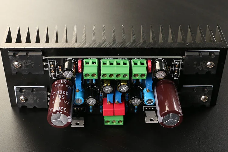 Выходные транзисторы, диодный мост и микросхема стабилизатора нуждаются в хорошем охлаждении. Для усилителей А класса сильный нагрев — неизбежное зло. Это нужно учитывать при выборе корпуса для усилителя JLH. Я заказал на Aliexpress корпус с огромными радиаторами. Он идеально подходит для этого усилителя: