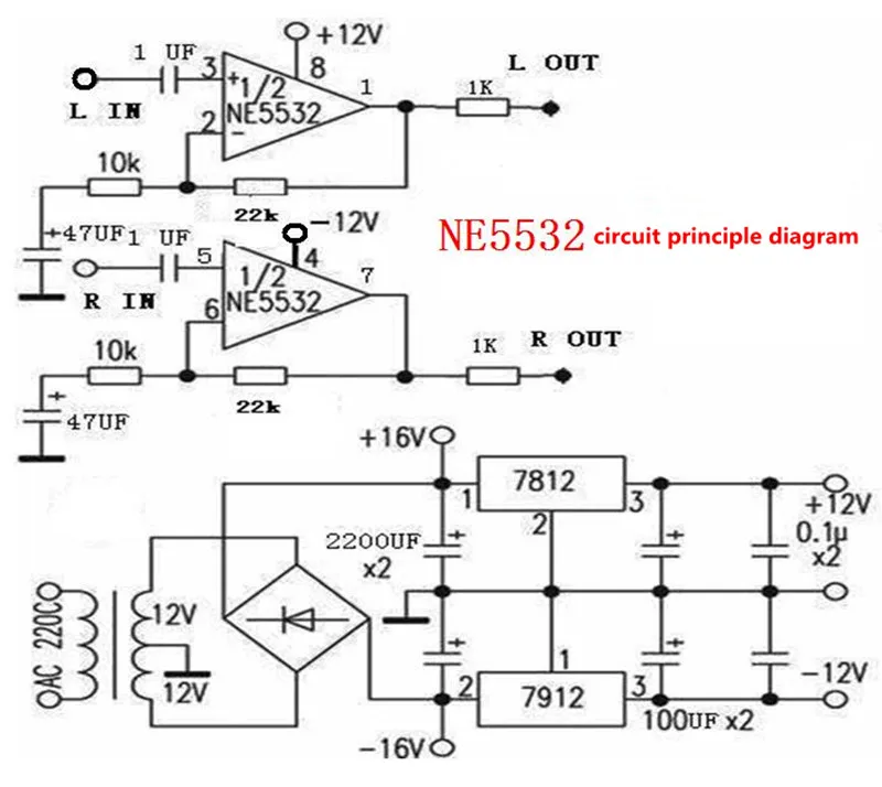 Обратите внимание, что формула говорит только о соотношении резисторов, а не об их фактических значениях. К счастью, в аудиоусилителях значения не слишком критичны, обычно допустимо поддерживать значения резисторов в диапазоне от 10 до 100 кОм. Тем не менее, стоит попытаться сохранить R 9.0025 в как можно более высокое сопротивление, а также в практическом усилителе, вместо прямого заземления неинвертирующего входа он должен быть заземлен резистором с тем же значением, что и R в , чтобы сохранить (крошечные) входные токи равный. Это дает больше шансов, что выходное напряжение равно нулю вольт (или близко к нему), когда вход равен нулю вольт.